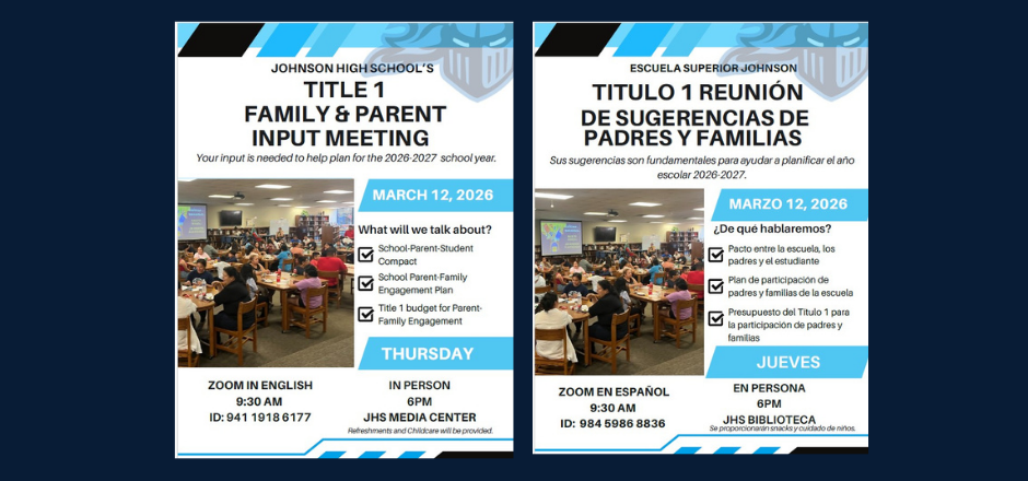 The stakeholders of Johnson High School envision our school as a place where students are encouraged to use their talents to make a positive difference. At the heart of our vision are three keys: Student empowerment, a rigorous, engaging curriculum, and an environment conducive to achieving success.